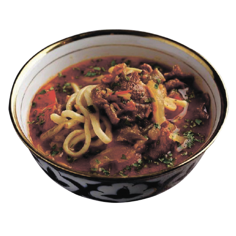 Говядина, морковь, болгарский перец, , редька, томаты, лук, зира, зелень, лапша для лагмана.