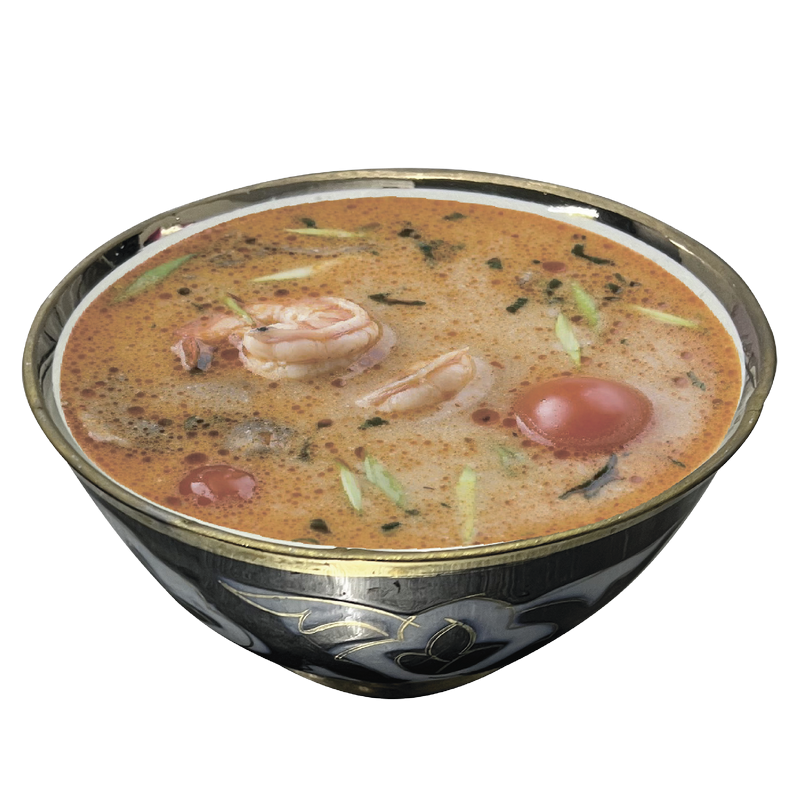 Креветки, форель, грибы вешки, лук зеленый, перец черный, рис, лайм, черри, кокосовое, молоко, зелень