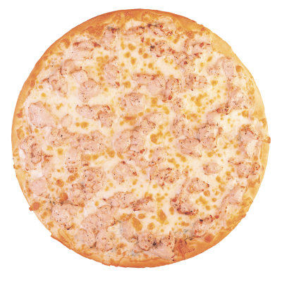 Тесто, соус "Пармеджано", сыр «Моцарелла», филе куриной грудки, шампиньоны, соус