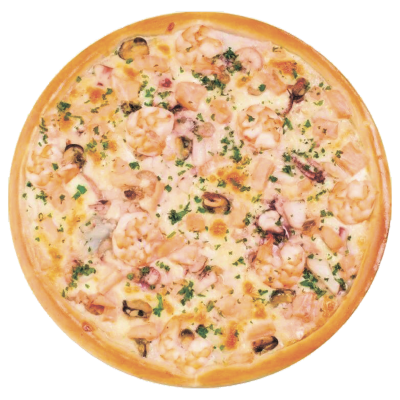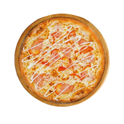 Соус "Ранч", сыр моцарелла, колбаски, томаты, красный лук, цыпленок, сладкий перец, чеснок, соус "Бургер", орегано