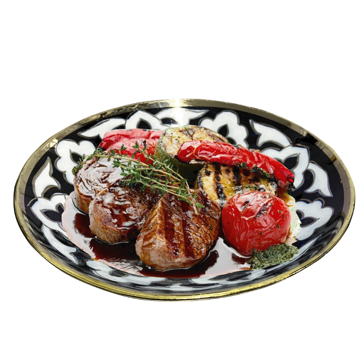 Филе телятины, перец сладкий, баклажан, кабачки, помидоры, специи