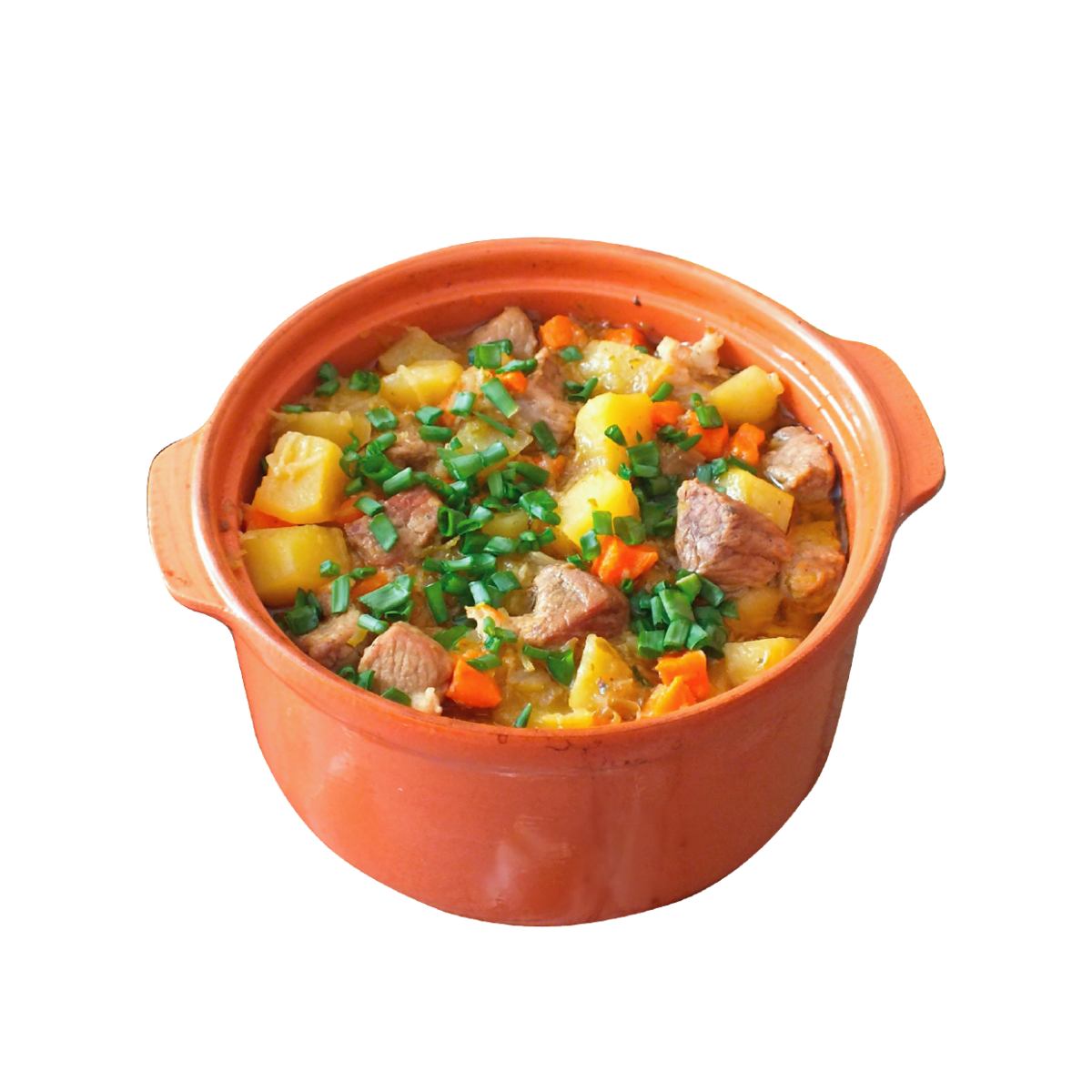 Баранина, кабачок, баклажан, картофель, морковь, сладкий перец, помидор, лук, томатная паста, специи.
