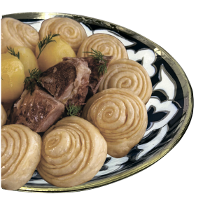 Телятина/баранина (на выбор), картофель, грибы, лук, зира, кориандр, зелень